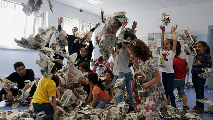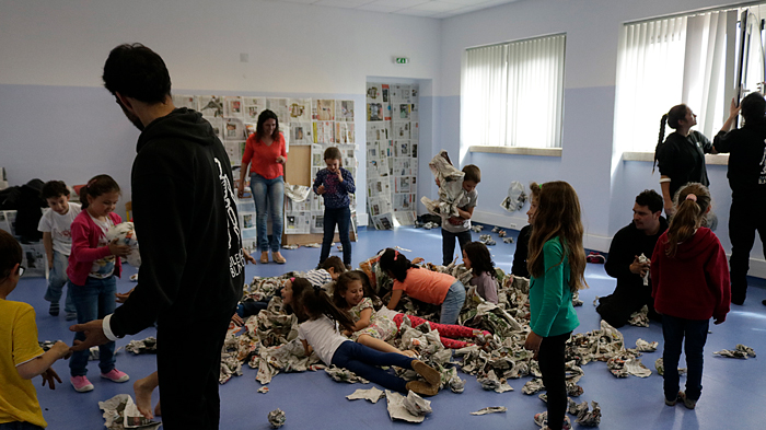 Game, discovery and coexistences, creating ties between language of materiality itself and the little or no use of word. The participants recognize in the newspaper an instrument with different possibilities for play and creation.
