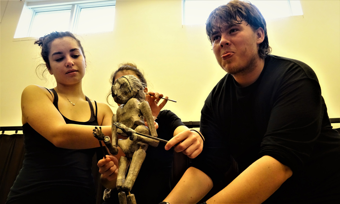 The manipulation of puppets its conceived as a deep acting exercise. The actor creates from his moves, from observation of his own body in relation with another. This dialogue gives importance to the observation, with the purpose of trespassing to the puppet or another element. The puppet or object is the extension the actor’s body, in which dialogue, breathing and movement from diverse bodies, are conjugated.